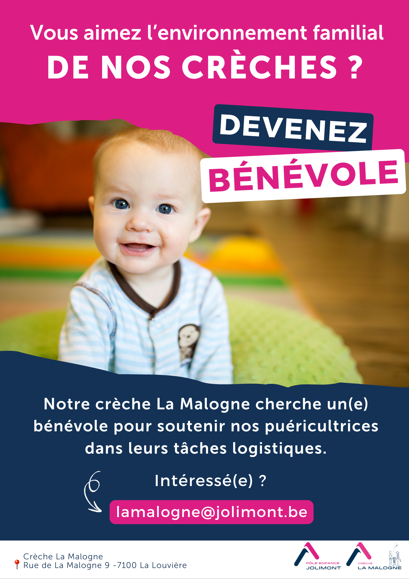 Notre crèche La Malogne cherche un(e) bénévole pour soutenir nos puéricultrices dans leurs tâches logistiques !